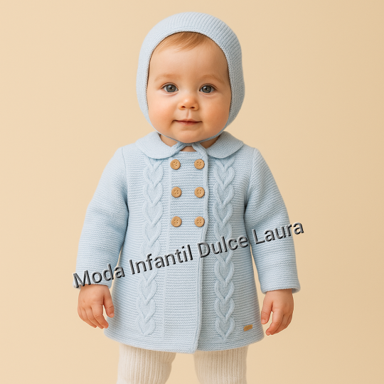 Precioso abrigo de lana de color azul acompañado de una capota a juego A5601 tallas desde 1 mes hasta 24 meses