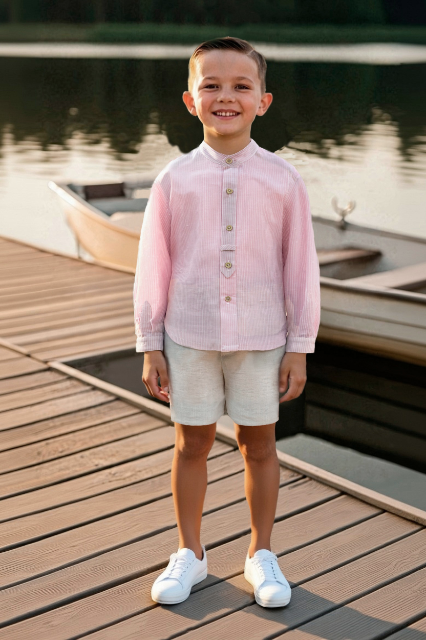 Conjunto camisa rosa y pantalón beige familia Palma desde 3 hasta 10 años ver1243