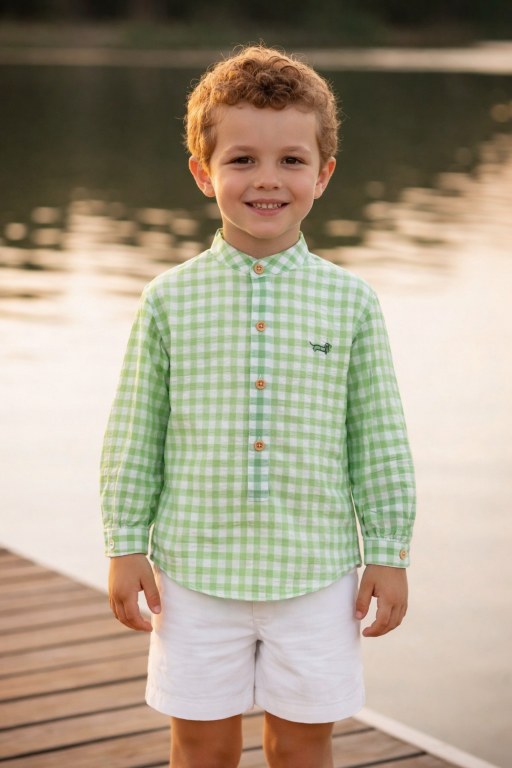 Conjunto camisa vichy lima y pantalón corto blanco familia Catanzaro desde 2 años hasta 10 años ver1240