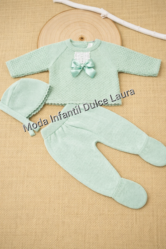 Conjunto hilo 3 piezas lazo verde desde 00 hasta 6 meses C915
