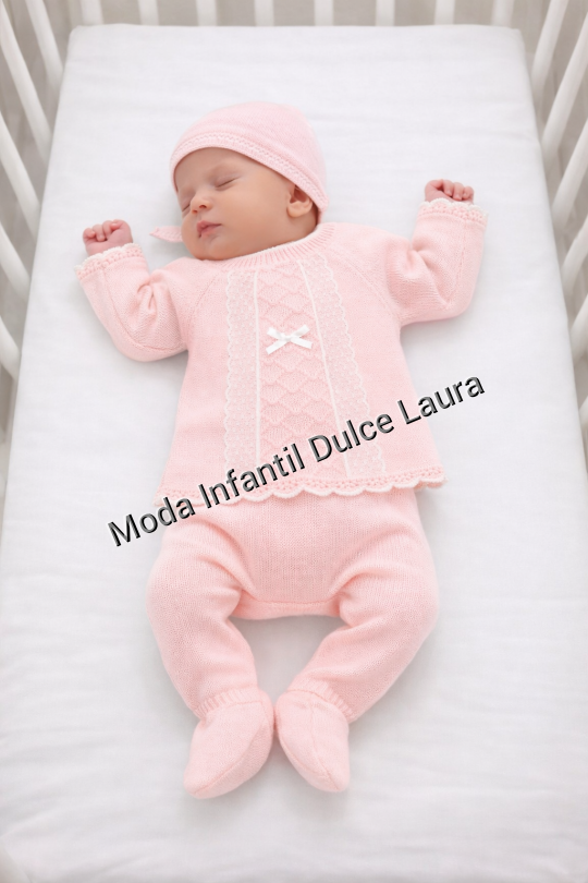 Sé el primero en valorar “Conjunto hilo 3 piezas rosa bebé desde 00 hasta 6 meses c1005”