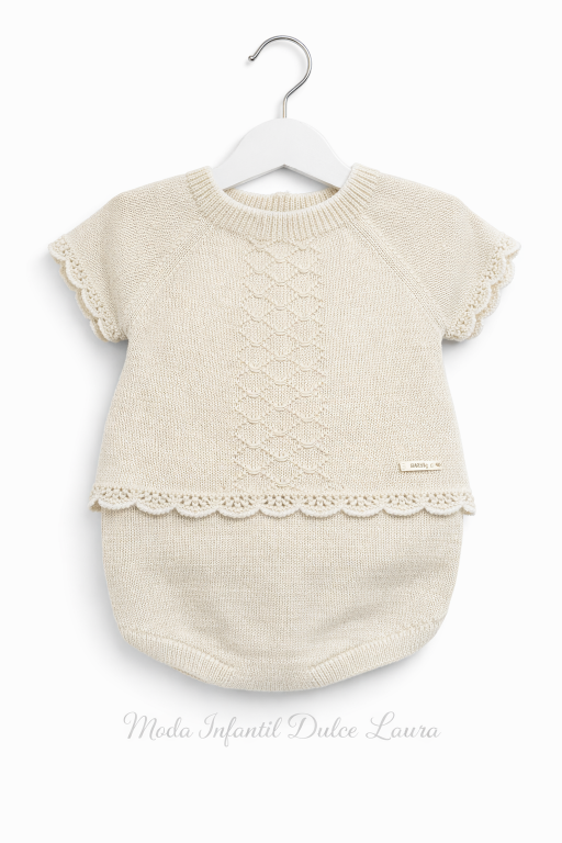 Conjunto hilo color arena ranita desde 0 hasta 12 meses C1110