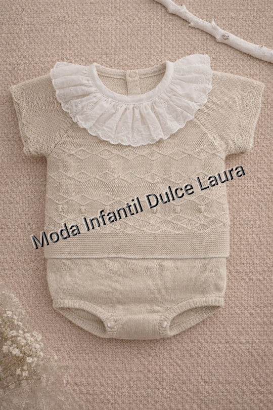 Conjunto hilo jersey cuello redondo y ranita arena desde 0 hasta 24 meses C1100