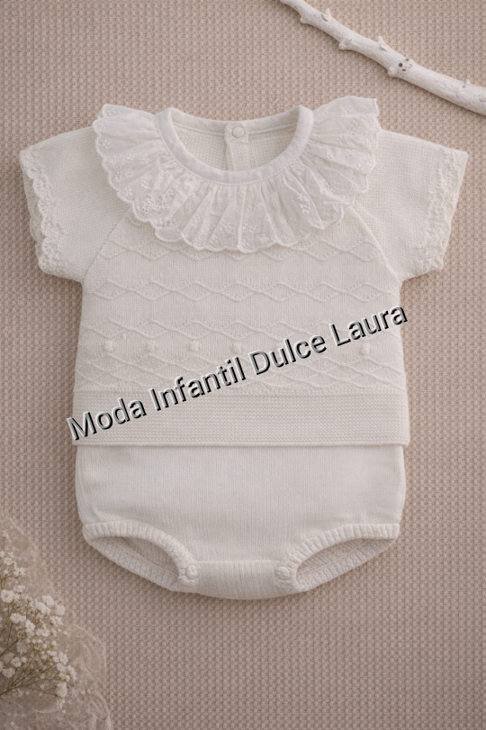 Conjunto hilo jersey cuello redondo y ranita blanco desde 0 hasta 24 meses C1100