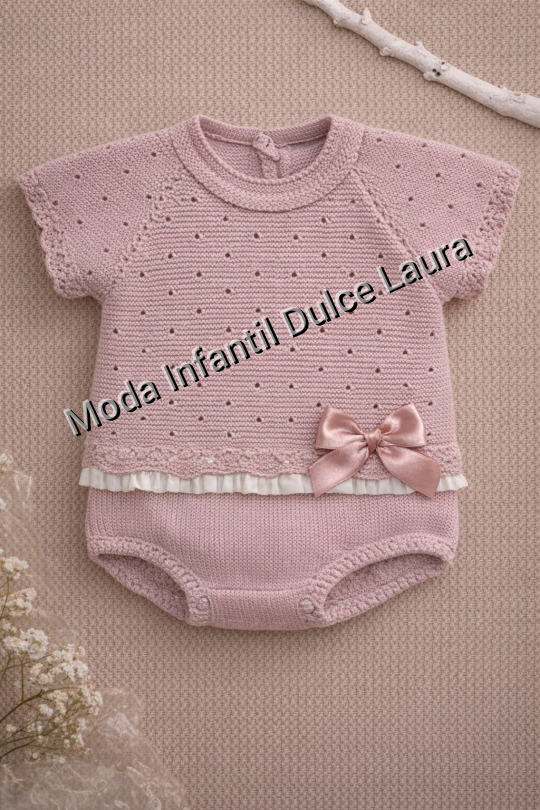 Conjunto hilo jersey lazo y ranita rosa maquillaje desde 0 hasta 24 meses C1105