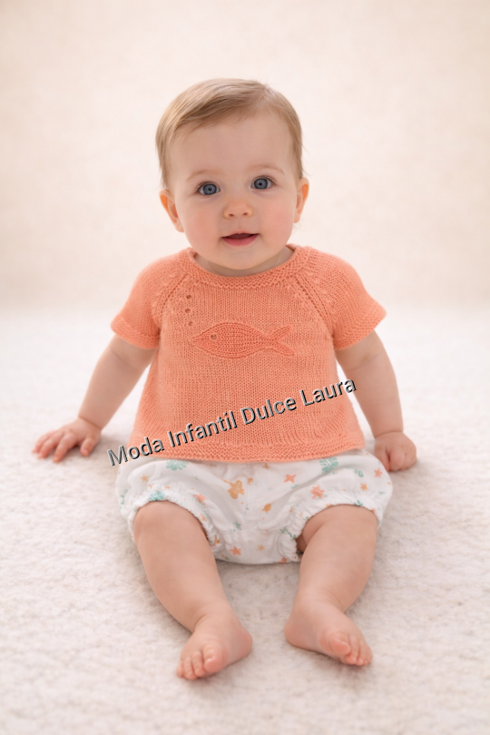 Sé el primero en valorar “Conjunto hilo ranita tela modelo sirena color melocotón desde 0 meses hasta 12 meses 26331”