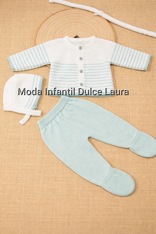 Conjunto hilo rayas verde y blanco desde 00 hasta 6 meses C1006