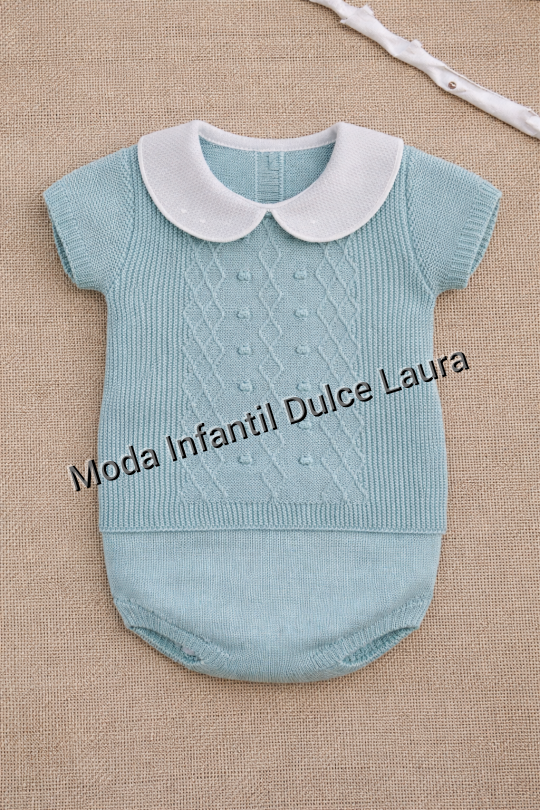 Conjunto jersey y ranita cuello bebe color verde desde0 hasta 24 meses C1101