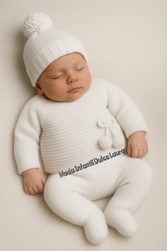 Conjunto lana blanco jersey capota y polaina desde 00 hasta 6 meses C9004