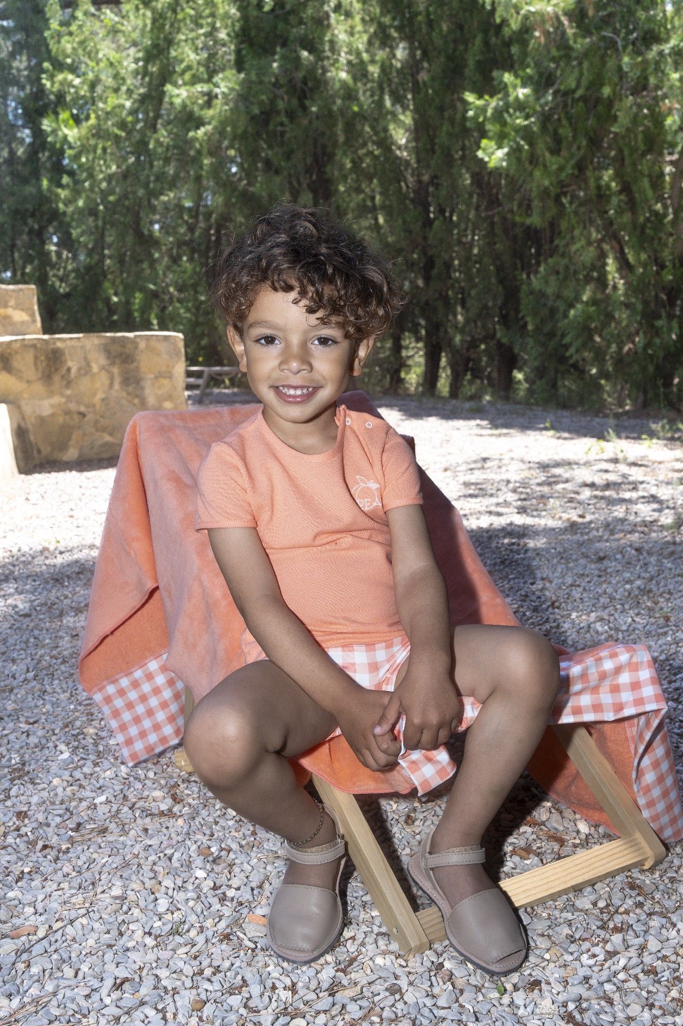 Conjunto polo manga corta naranja y pantalón corto cuadros Melocotón desde 12 m hasta 6 años 11347
