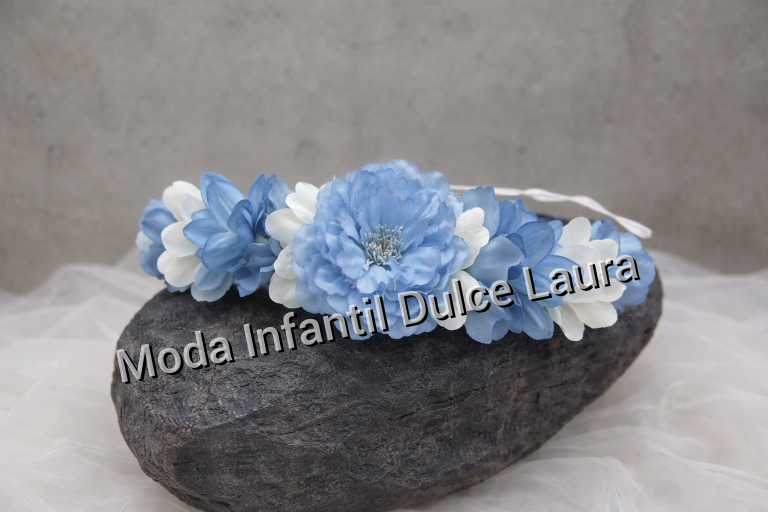 Corona ceremonia flores azul eléctrico y beige 0135