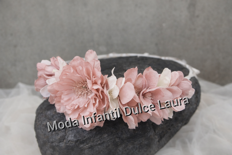Corona ceremonia flores rosa y beige 0135