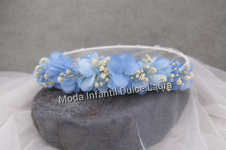 Corona ceremonia flores y paniculata azul 0142