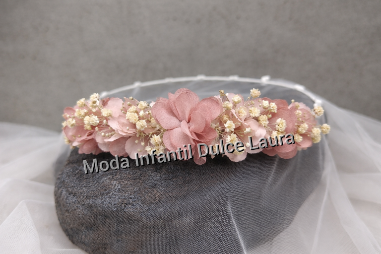 Corona ceremonia flores y paniculata rosa 0142