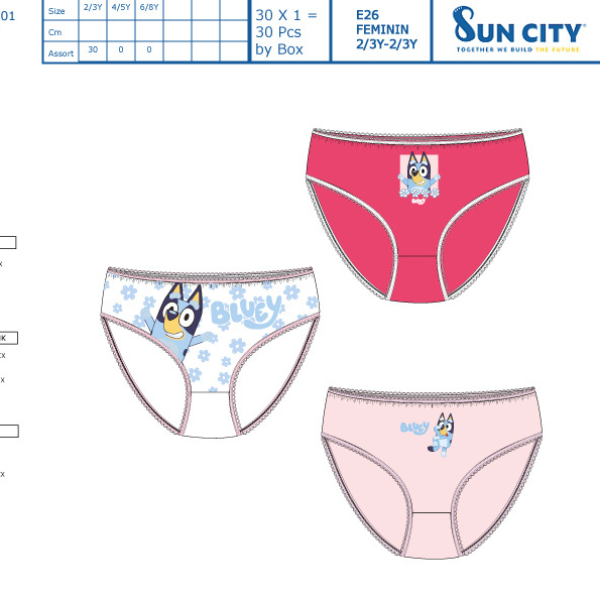 Pack 3 braguitas Bluey y bingo desde 2 hasta 8 años