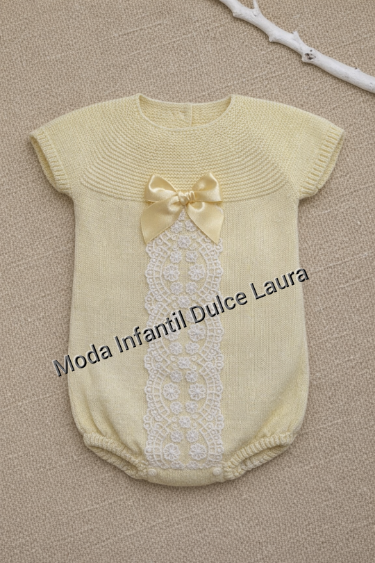 Pelele hilo lazo encajes color amarillo desde 0 hasta 12 meses P1305
