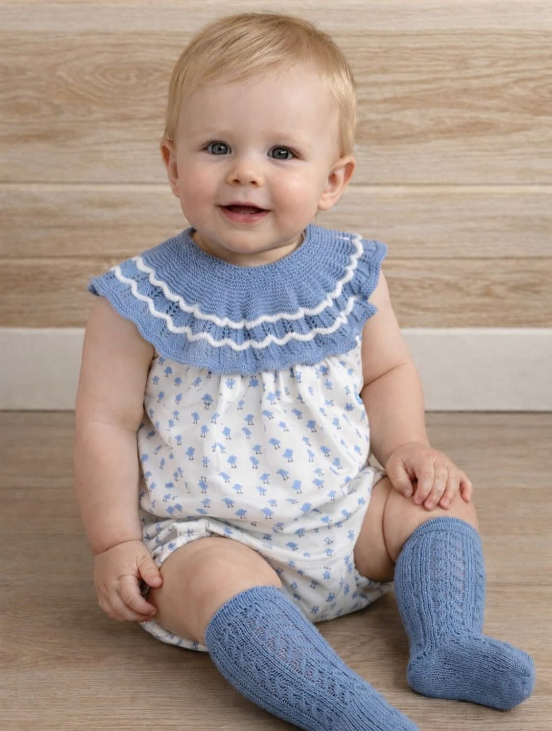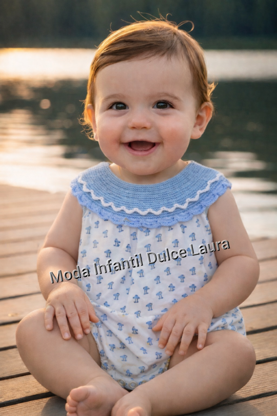 Pelele hiloo y tela pollitos azul desde 0 hasta 12 meses p1312