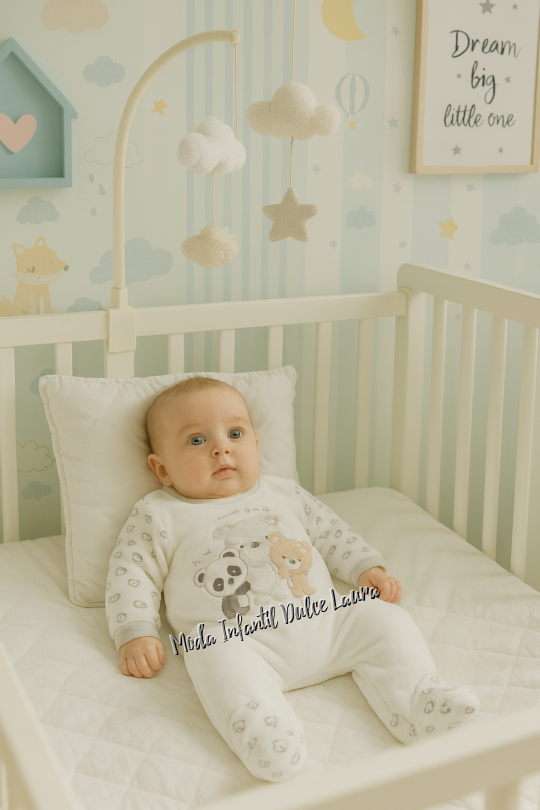 Pelele terciopelo blanco y gris ositos desde 3 meses hasta 24 meses KN05