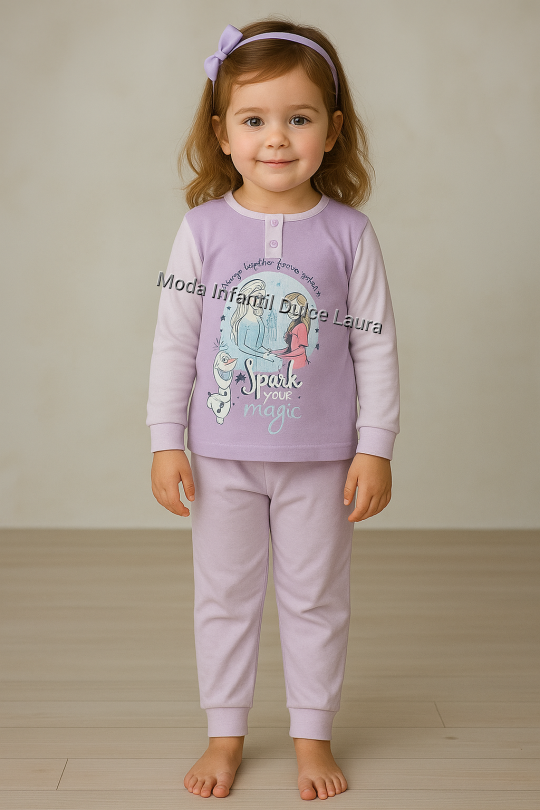 Pijama algodón Frozen lila clarito desde 3 hasta 8 años