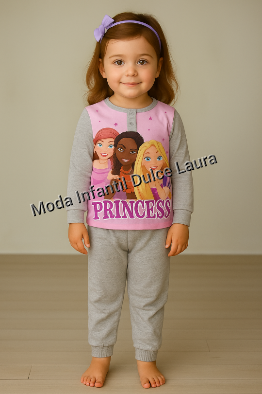 Pijama algodón princesas rosa y gris desde 3 hasta 8 años HW2064