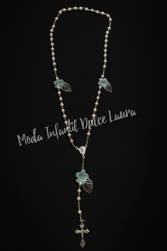 Sé el primero en valorar “Rosario comunión perlas y flores verdes 93236”