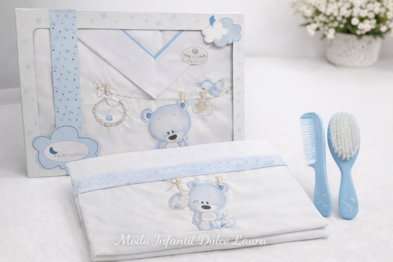 Sabana algodón cuna osito azul con peine a juego