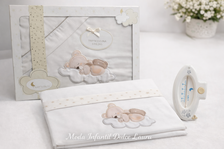 Sabana algodón cuna osito beige con termómetro bañera