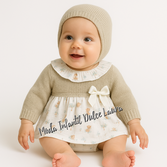 Vestido bambula ositos con capota desde 0 meses hasta 12 meses