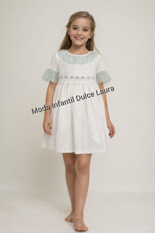 Vestido de ceremonia modelo 6121 tul verde desde 2 hasta 10 años