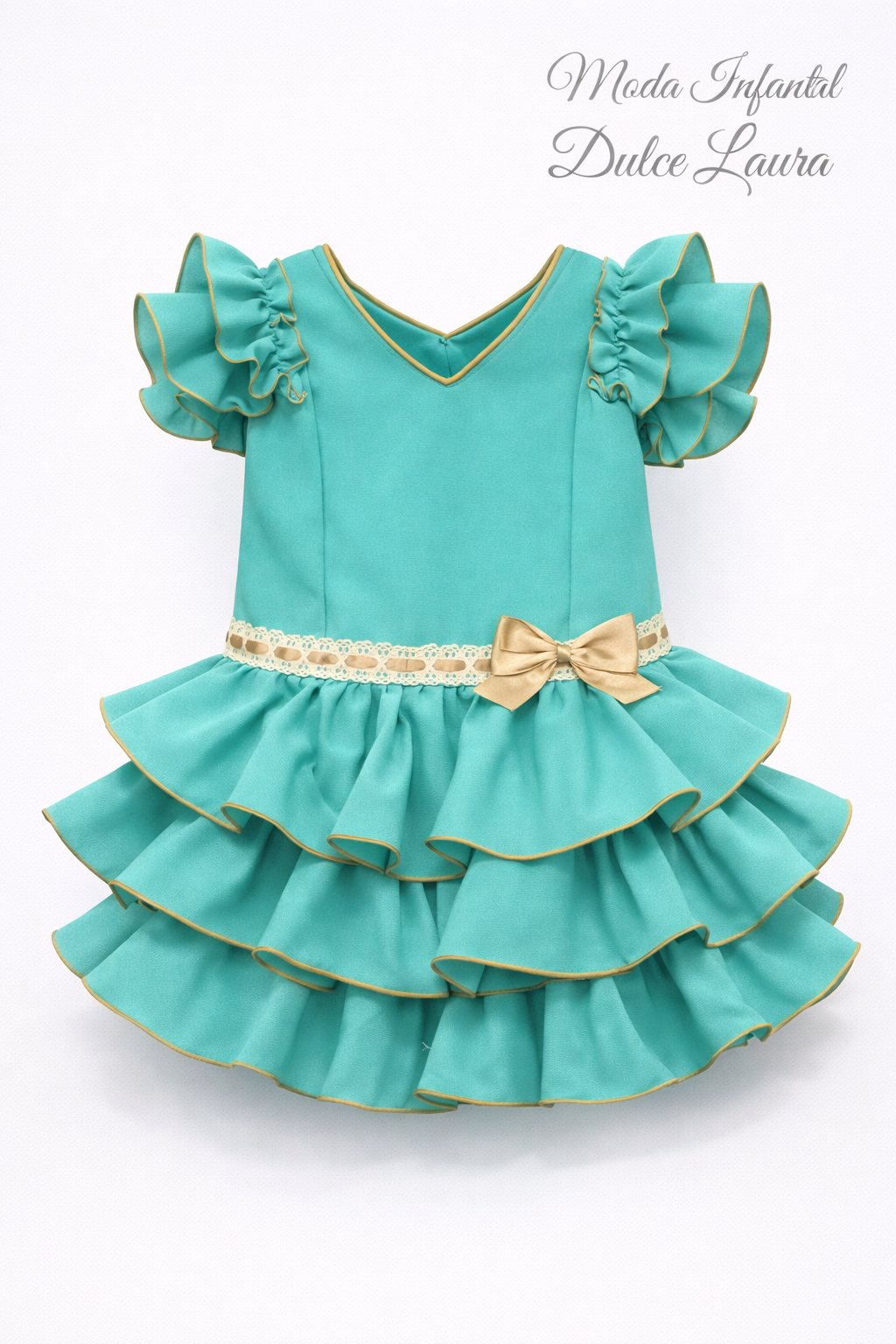 Vestido de flamenca liso verde y camel desde 2 hasta 6 años