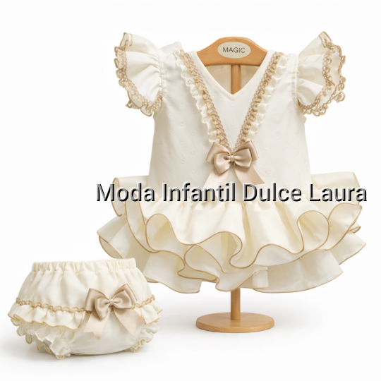 Vestido flamenco braguita lunares beige flocados desde 3 m hasta 24 meses