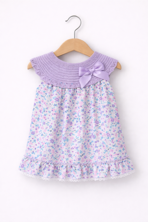 Vestidos lazo y flores malva desde 0 hasta 18 meses v1313